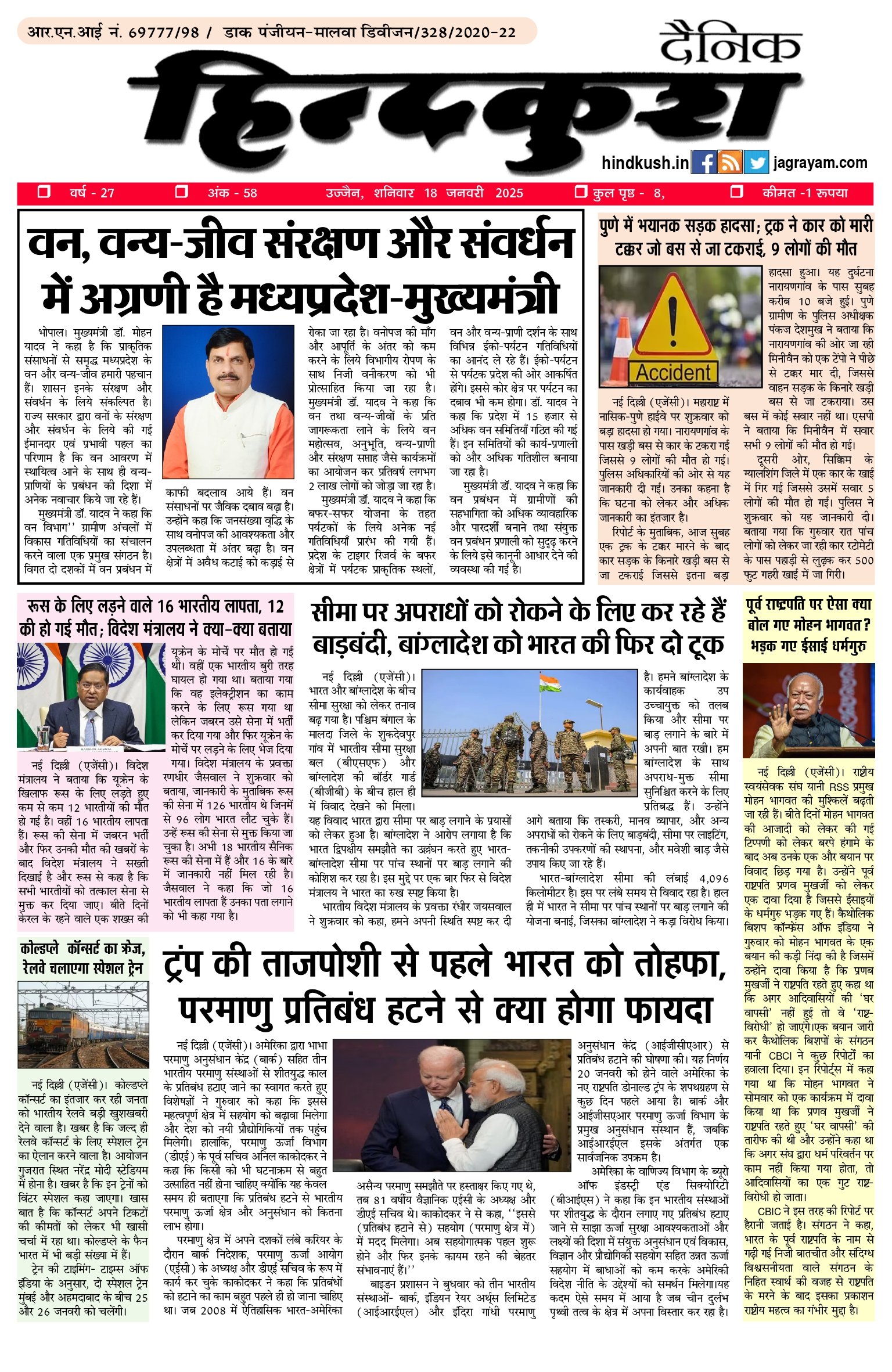 आर.एन.आई नं. 69777/98 / डाक पंजीयन–मालवा डिवीजन/328/2020-22