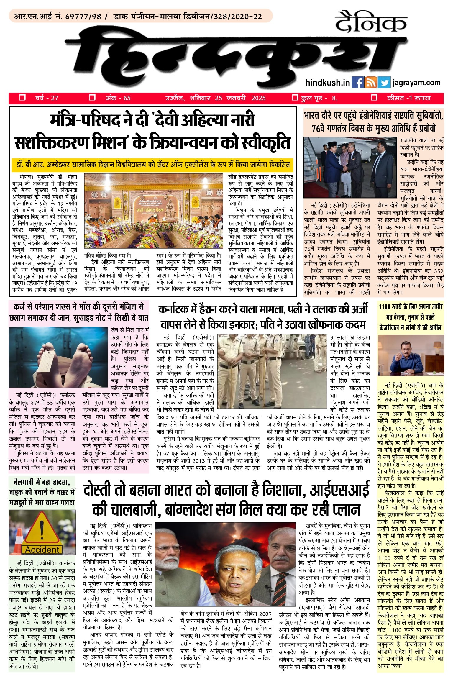 आर.एन.आई नं. 69777/98 / डाक पंजीयन–मालवा डिवीजन/328/2020-22