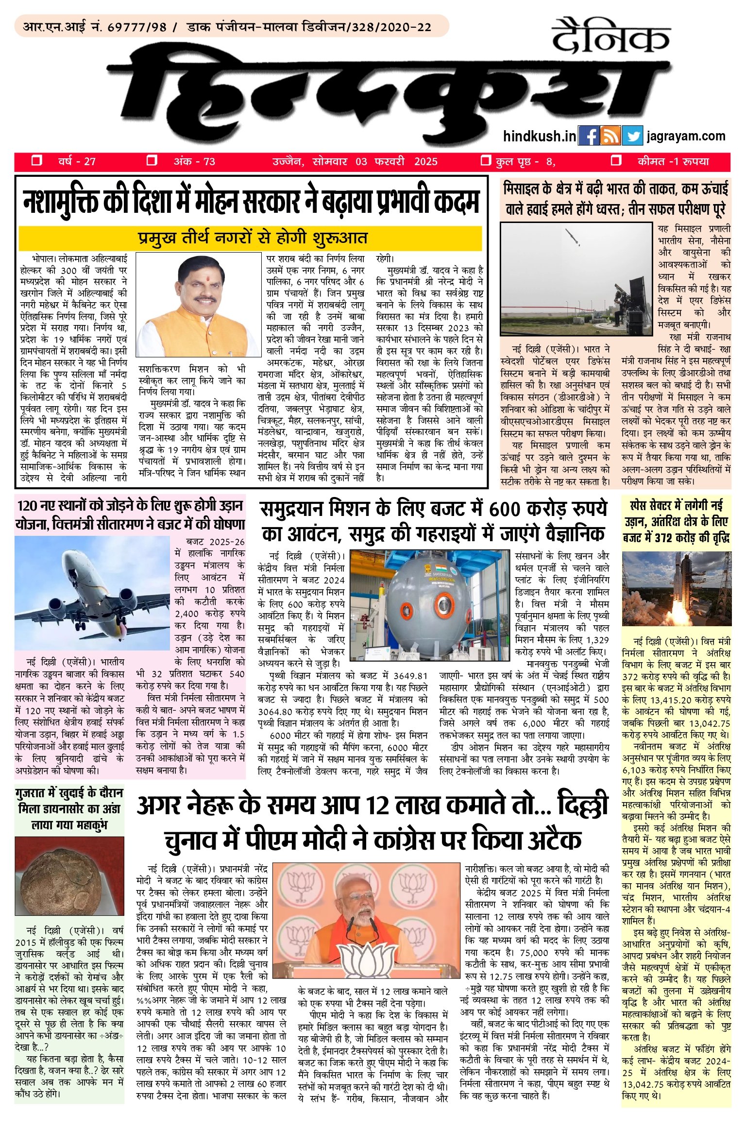 आर.एन.आई नं. 69777/98 / डाक पंजीयन–मालवा डिवीजन/328/2020-22
