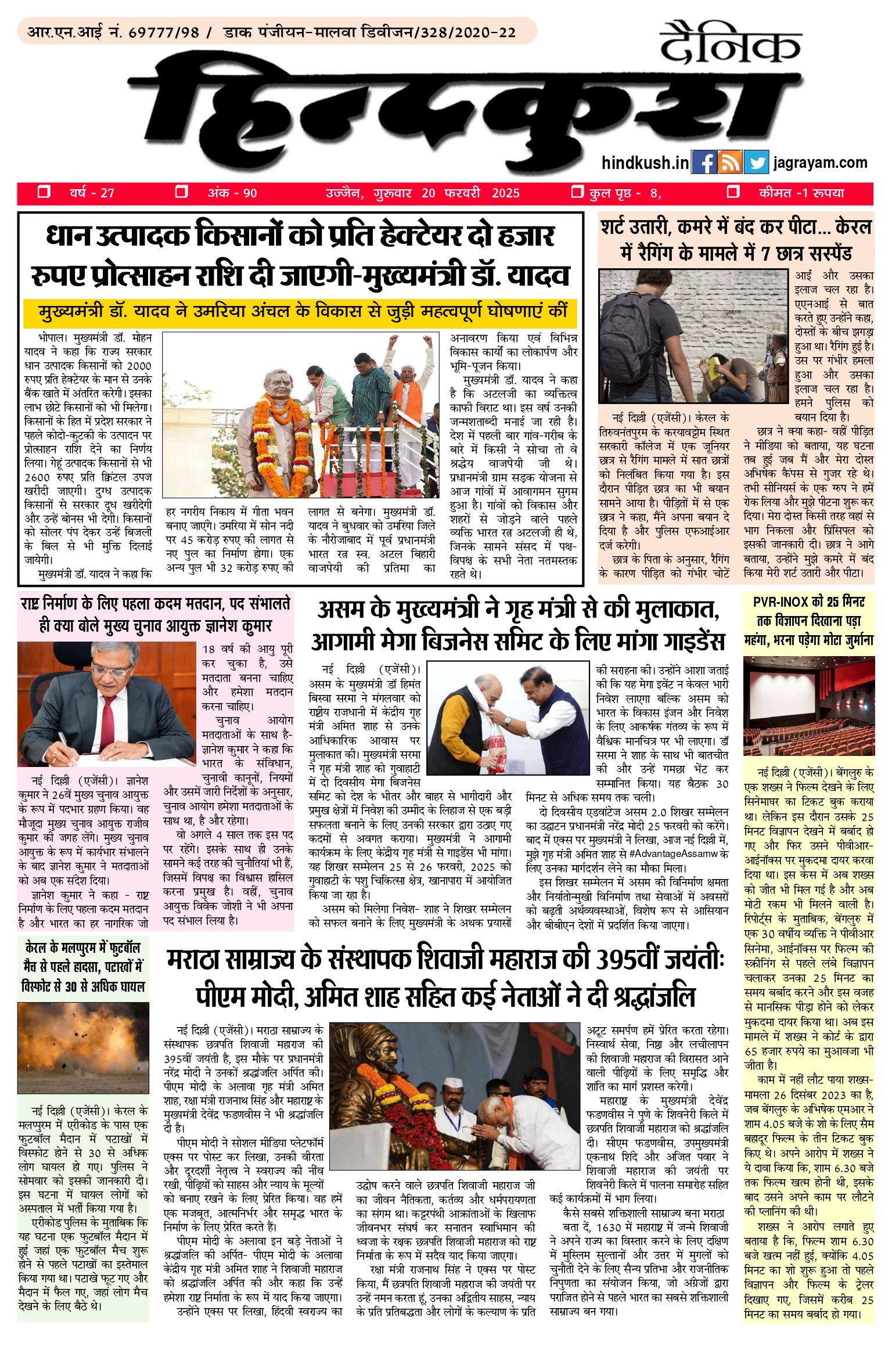 आर.एन.आई नं. 69777/98 / डाक पंजीयन–मालवा डिवीजन/328/2020-22