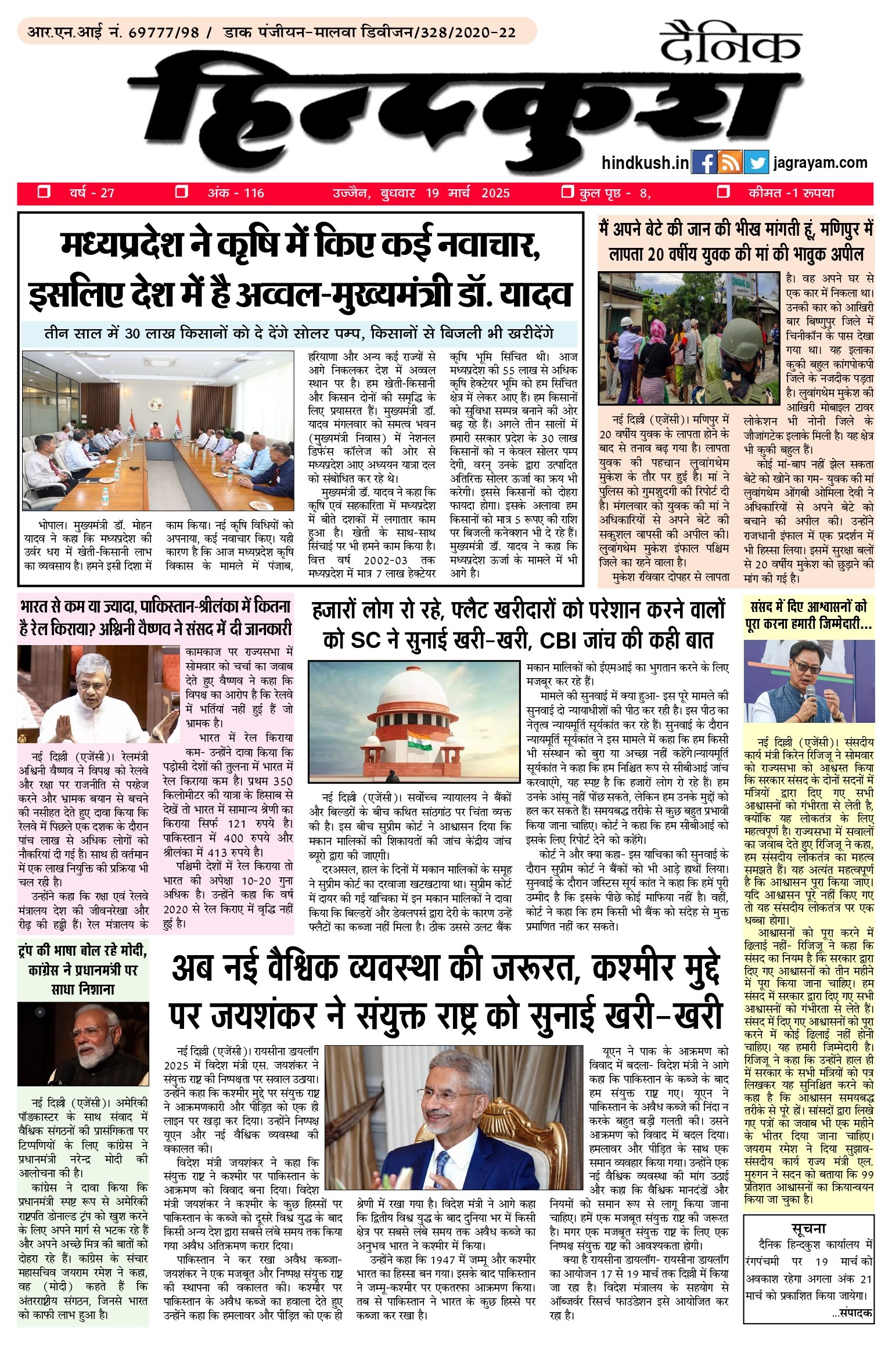 आर.एन.आई नं. 69777/98 / डाक पंजीयन–मालवा डिवीजन/328/2020-22