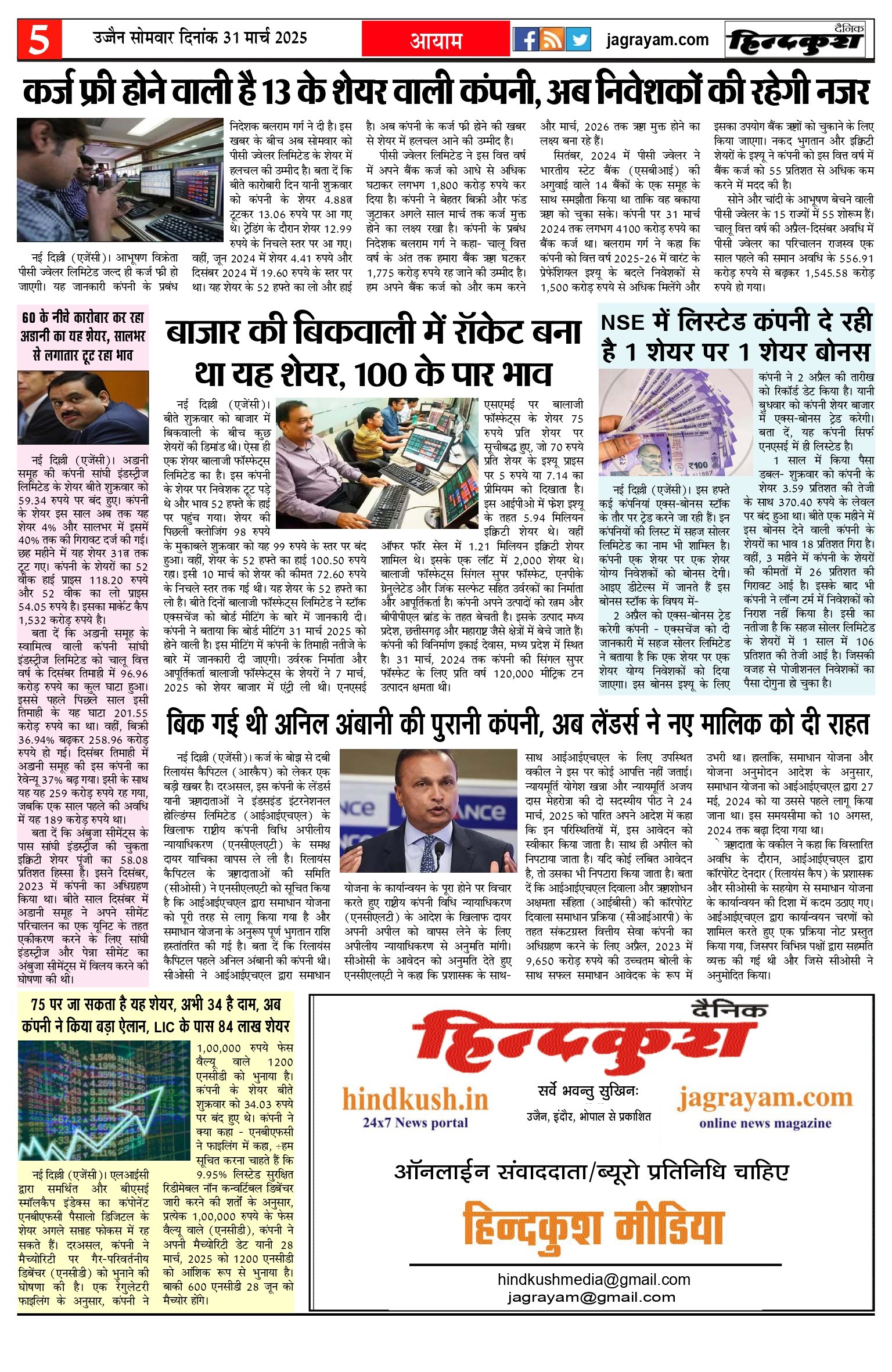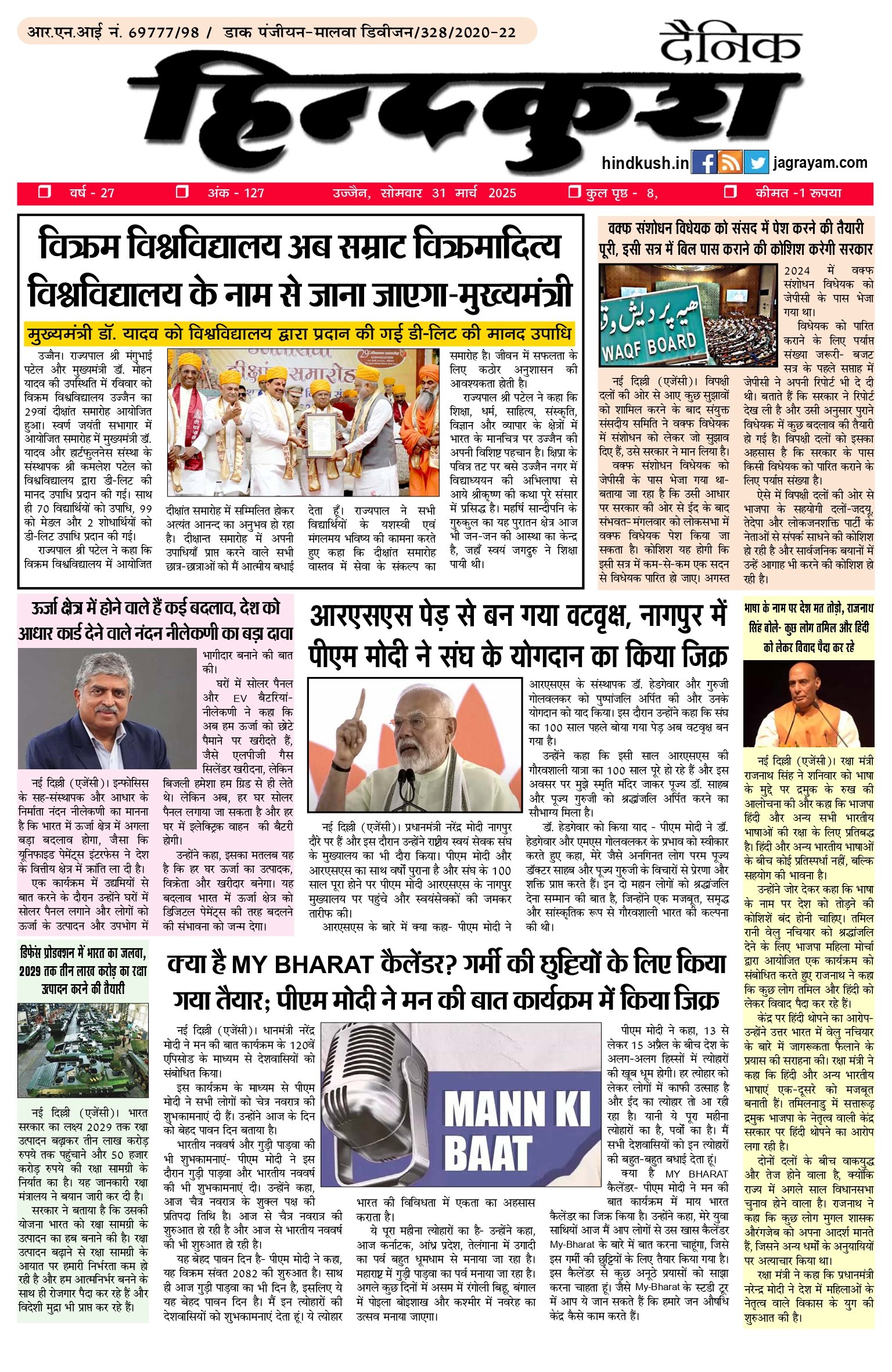 आर.एन.आई नं. 69777/98 / डाक पंजीयन–मालवा डिवीजन/328/2020-22
