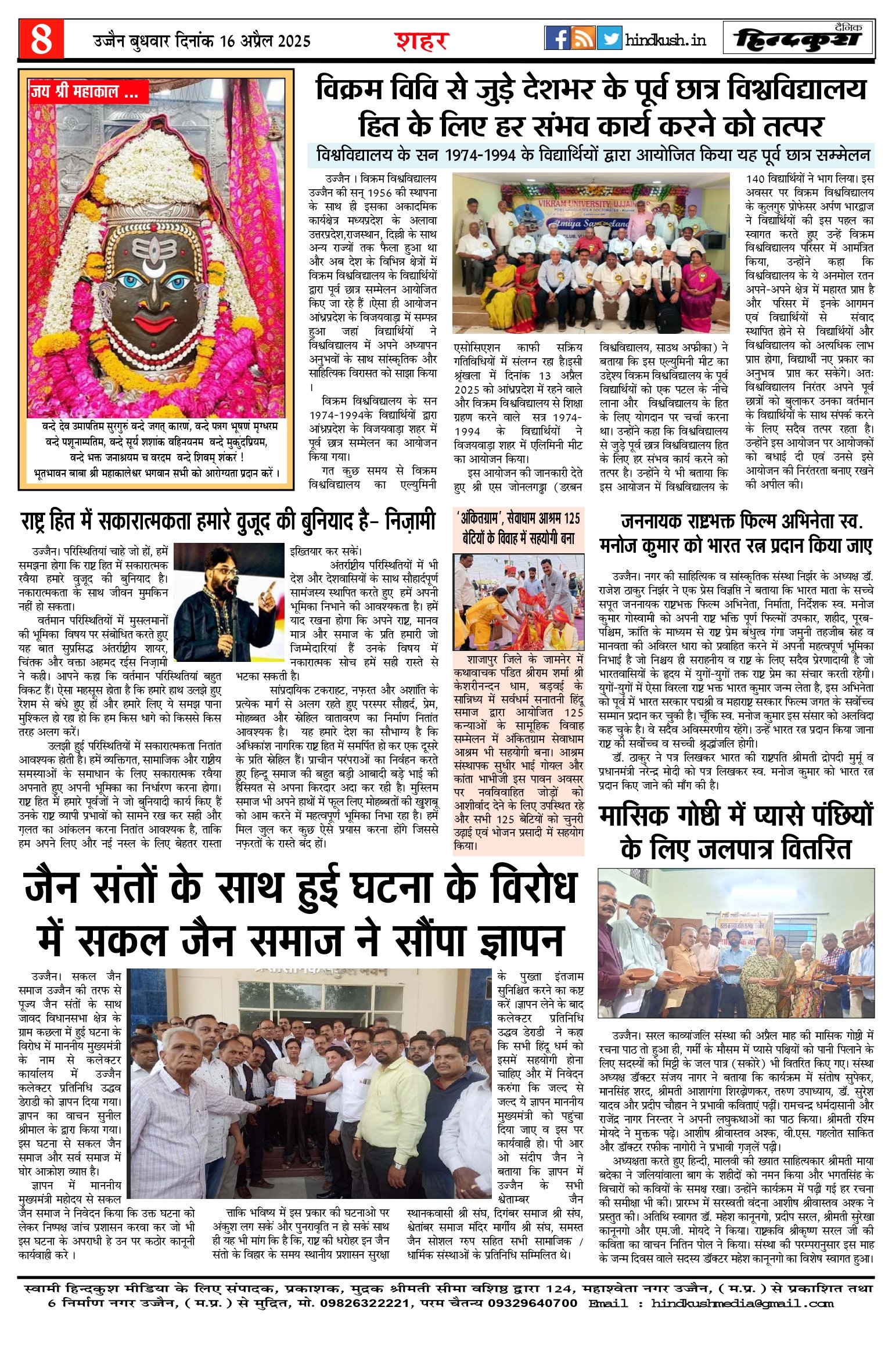 आर.एन.आई नं. 69777/98 / डाक पंजीयन–मालवा डिवीजन/328/2020-22