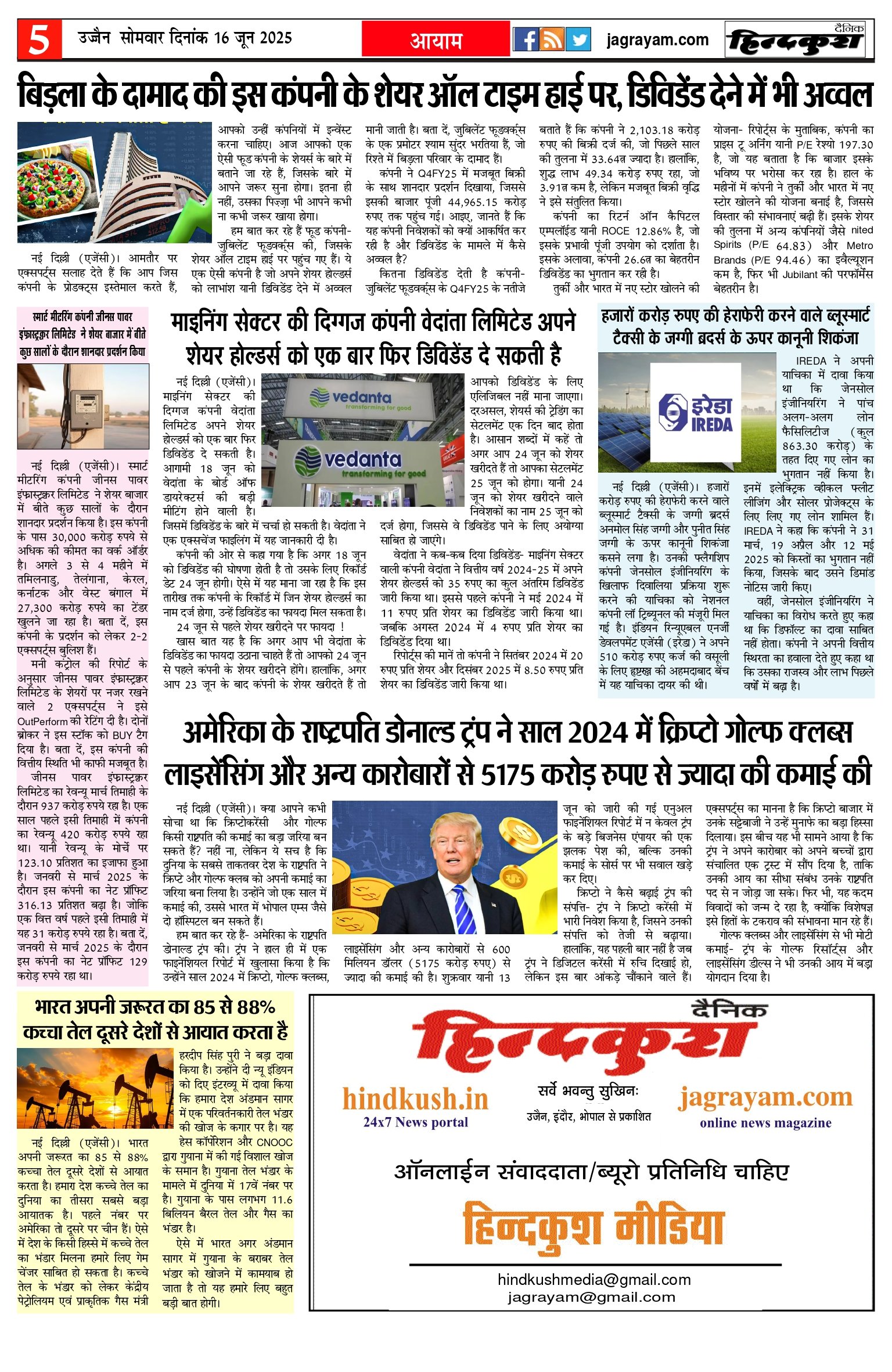 आर.एन.आई नं. 69777/98 / डाक पंजीयन–मालवा डिवीजन/328/2020-22