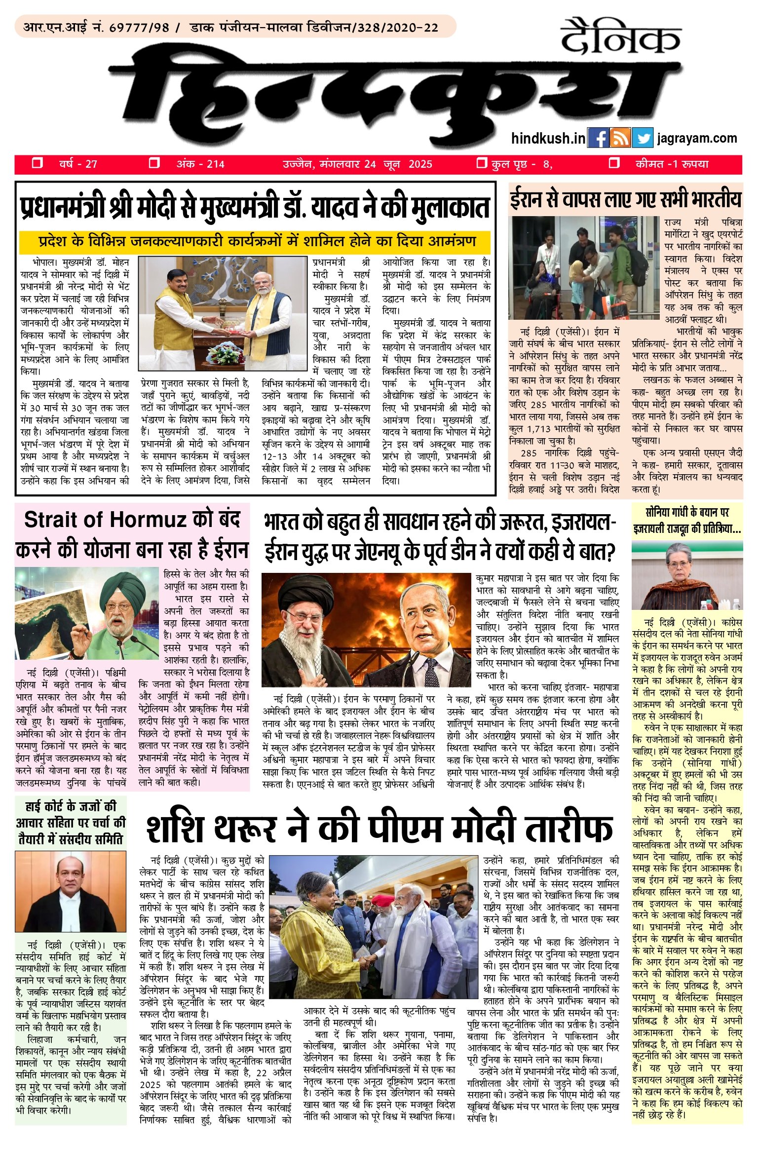 आर.एन.आई नं. 69777/98 / डाक पंजीयन–मालवा डिवीजन/328/2020-22