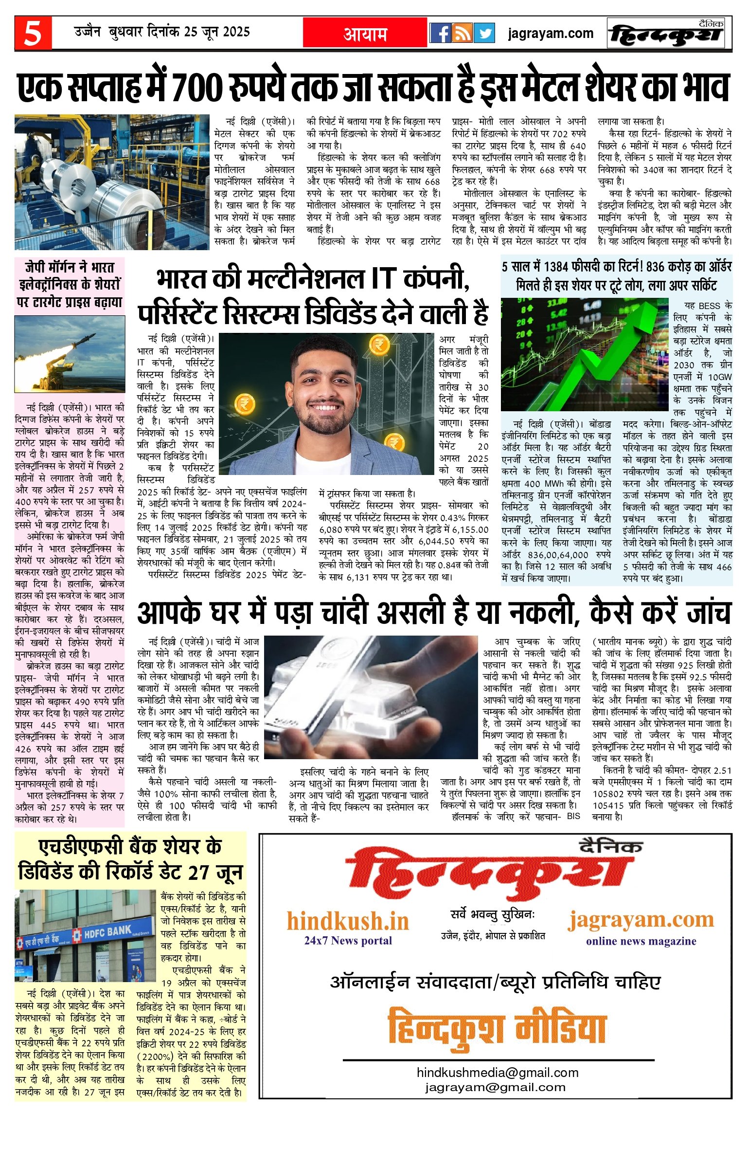 आर.एन.आई नं. 69777/98 / डाक पंजीयन–मालवा डिवीजन/328/2020-22