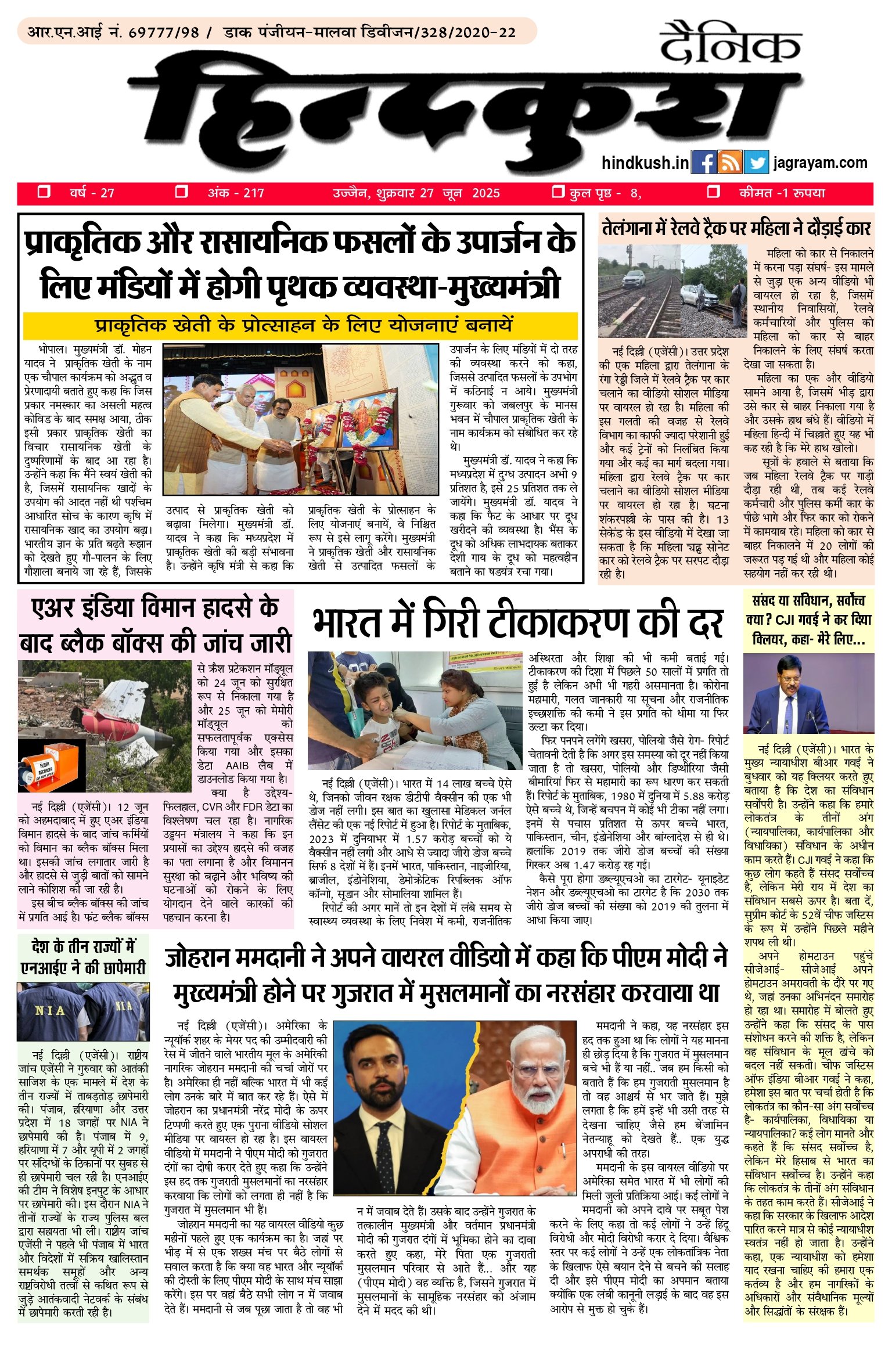 आर.एन.आई नं. 69777/98 / डाक पंजीयन–मालवा डिवीजन/328/2020-22