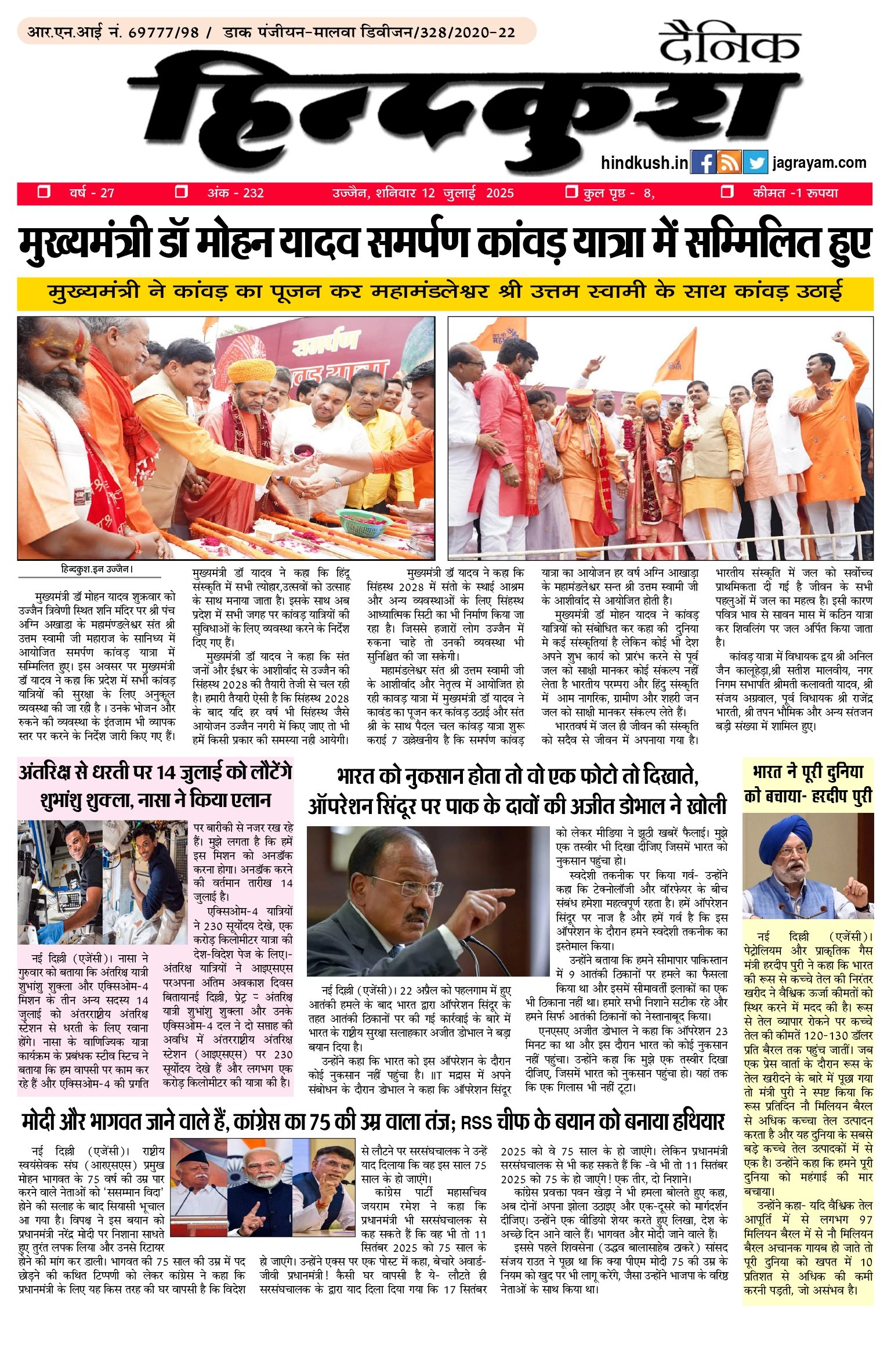 आर.एन.आई नं. 69777/98 / डाक पंजीयन–मालवा डिवीजन/328/2020-22