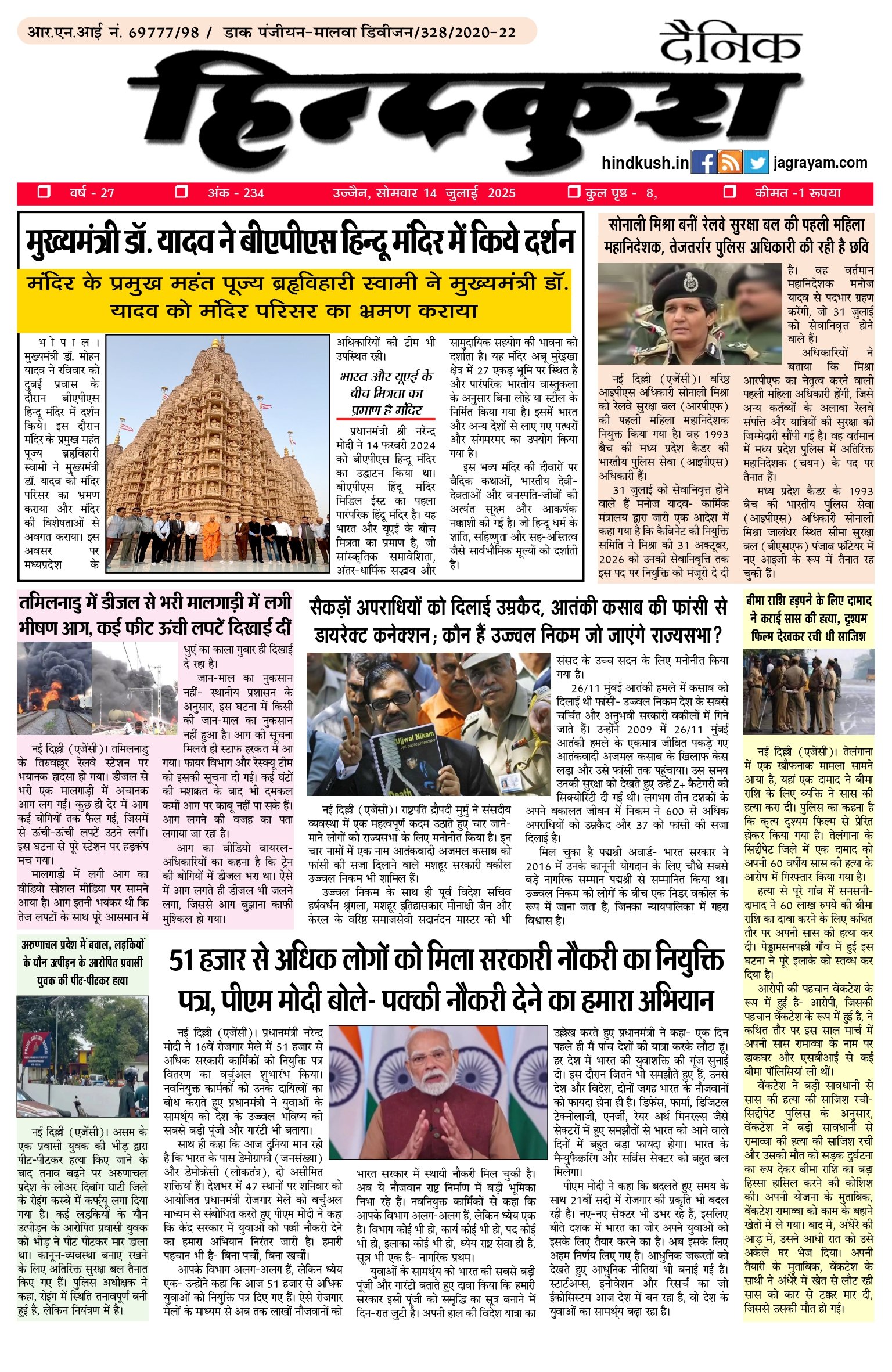 आर.एन.आई नं. 69777/98 / डाक पंजीयन–मालवा डिवीजन/328/2020-22