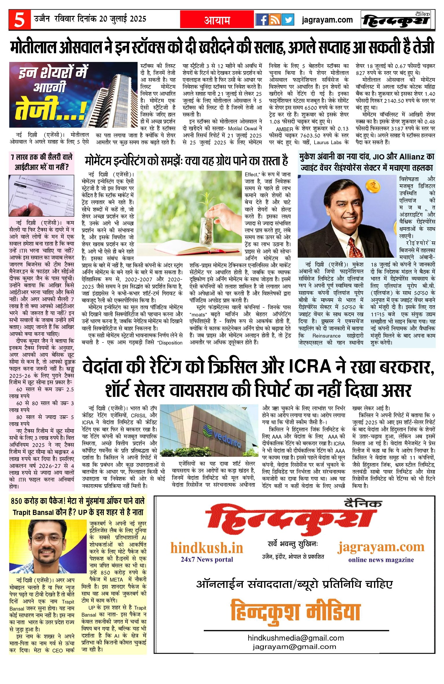 आर.एन.आई नं. 69777/98 / डाक पंजीयन–मालवा डिवीजन/328/2020-22