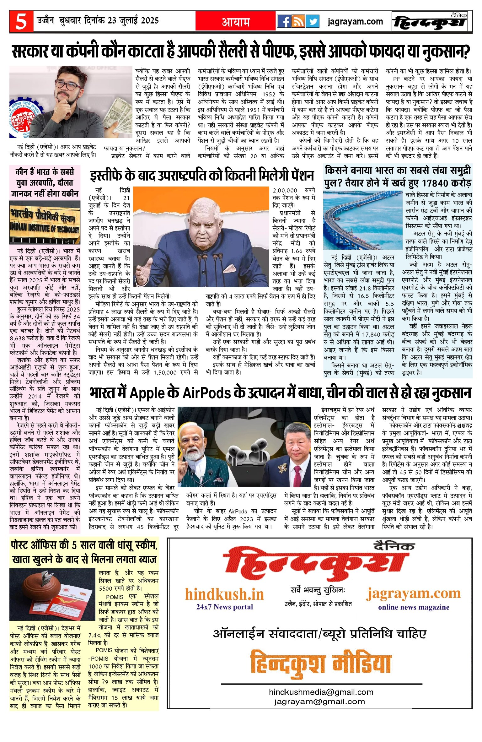आर.एन.आई नं. 69777/98 / डाक पंजीयन–मालवा डिवीजन/328/2020-22