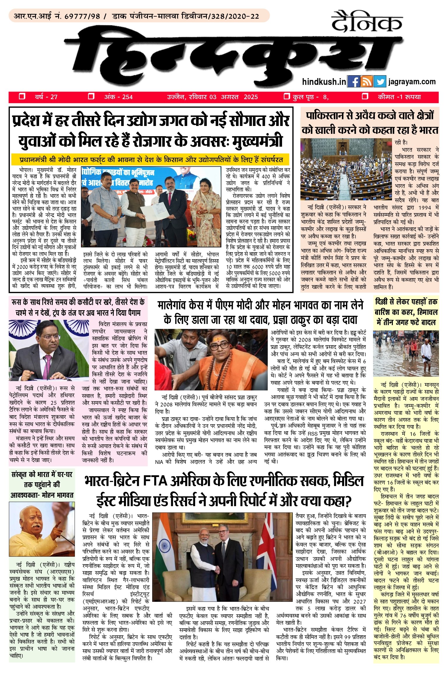 आर.एन.आई नं. 69777/98 / डाक पंजीयन–मालवा डिवीजन/328/2020-22