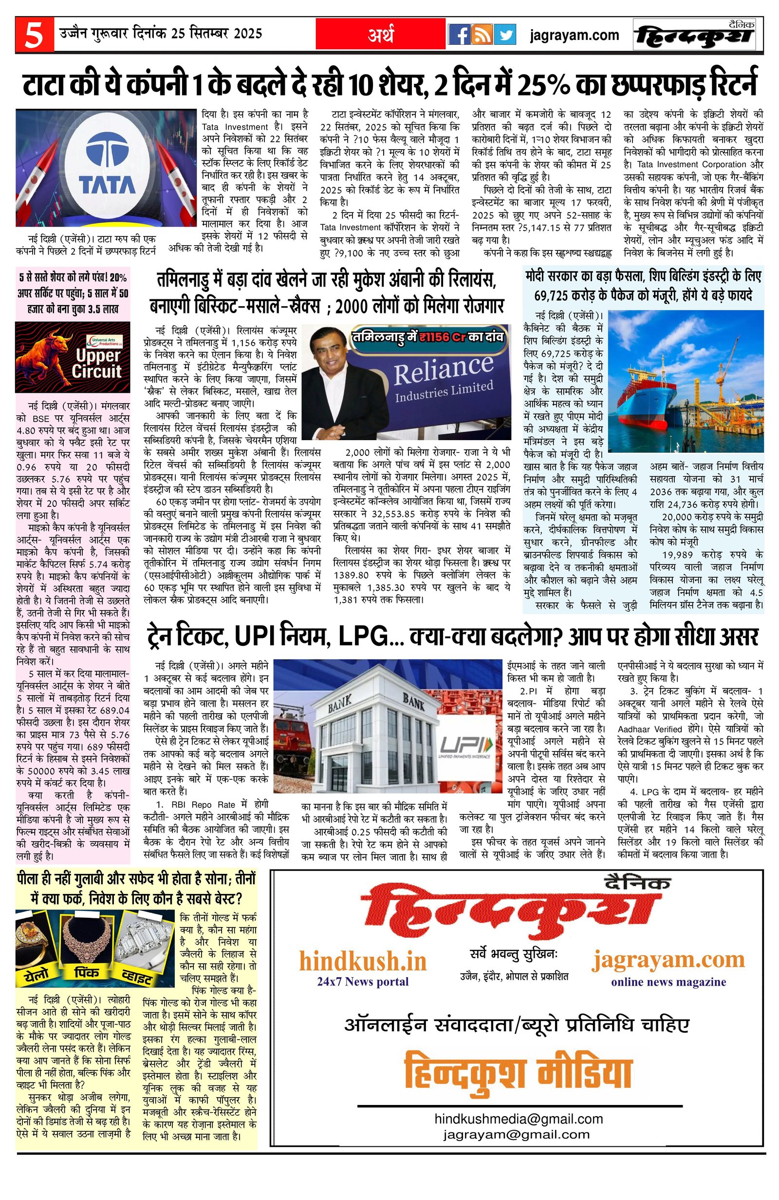 आर.एन.आई नं. 69777/98 / डाक पंजीयन–मालवा डिवीजन/328/2020-22