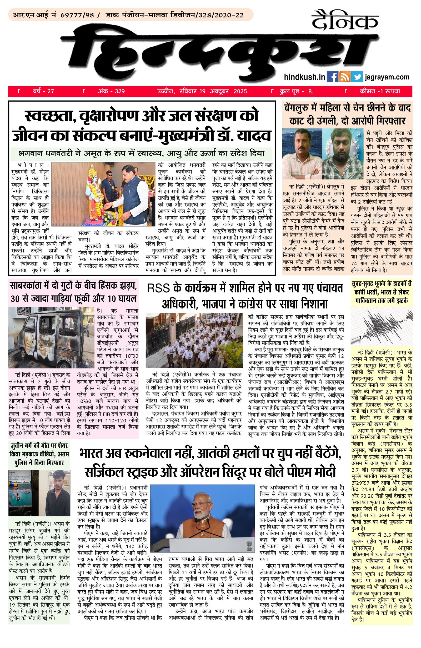 स्वच्छता, वृक्षारोपण और जल संरक्षण को जीवन का संकल्प बनाएं-मुख्यमंत्री डॉ. यादव
