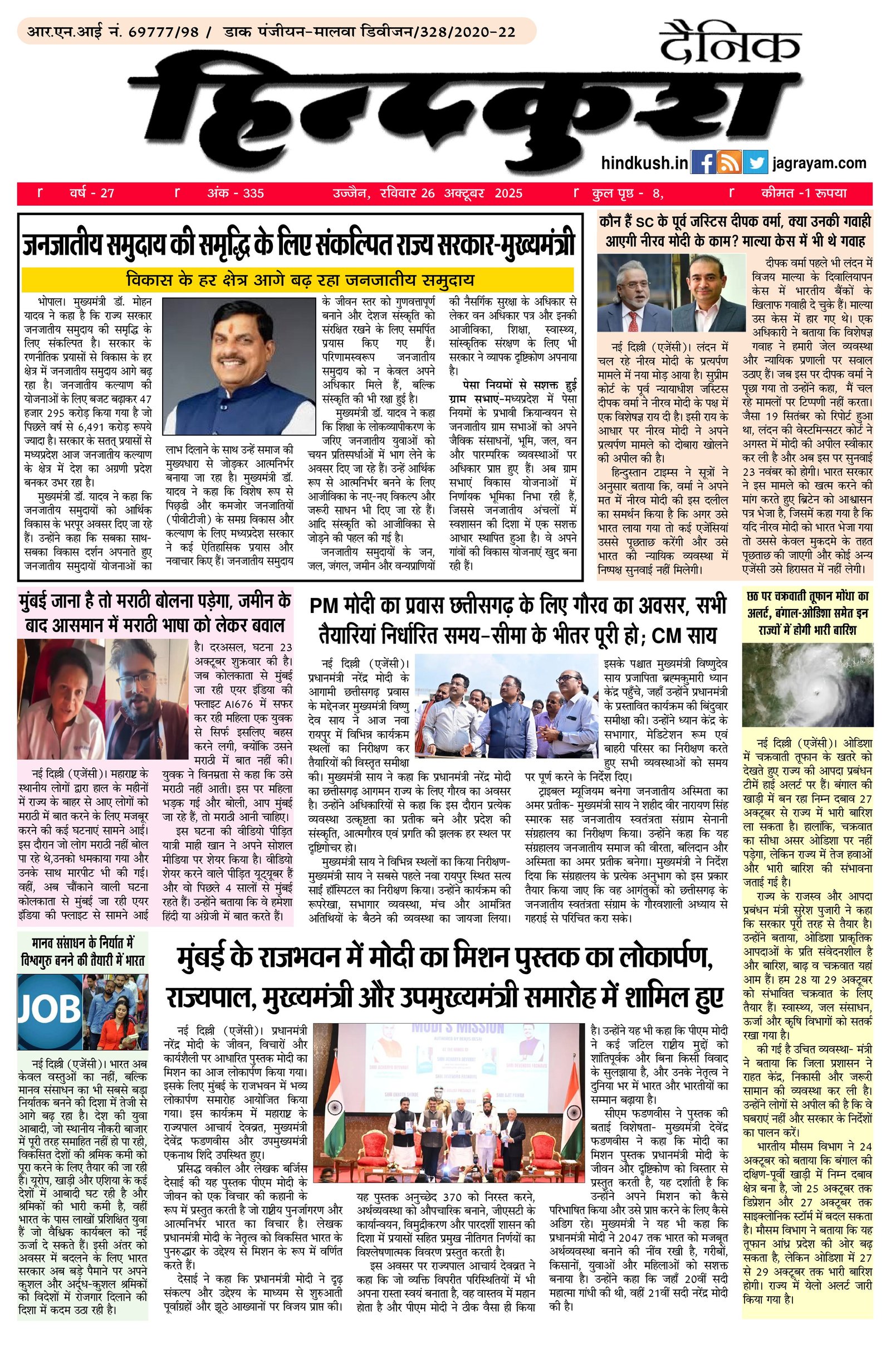 आर.एन.आई नं. 69777/98 / डाक पंजीयन–मालवा डिवीजन/328/2020-22